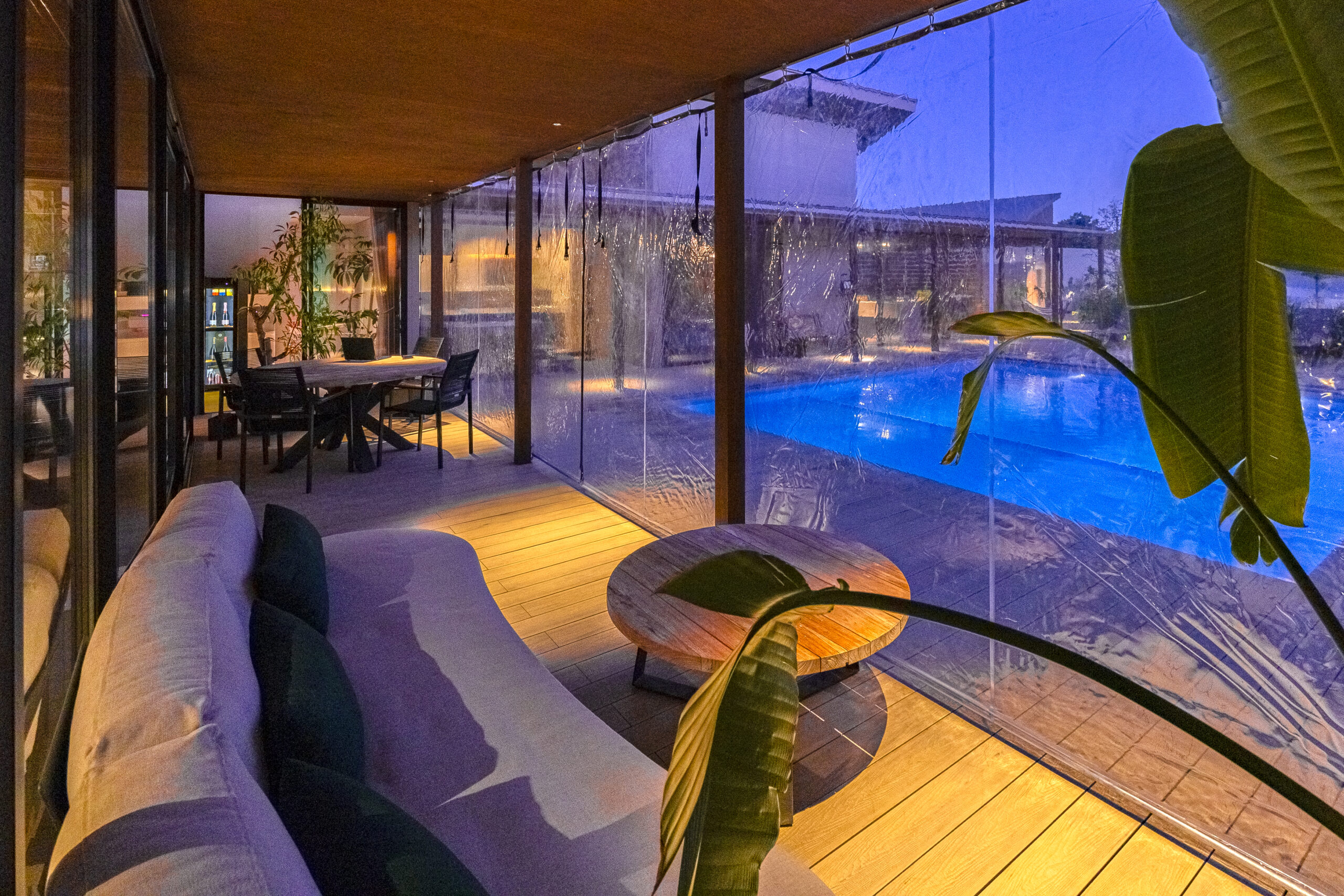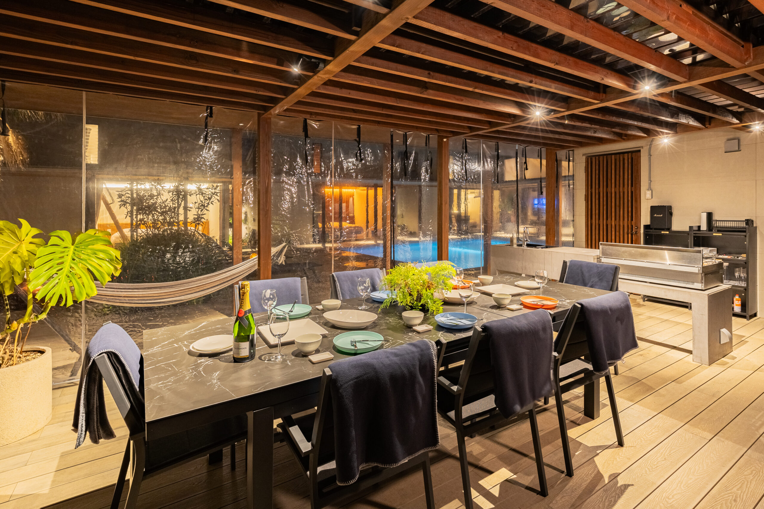 ビニールウォールがあるから、季節を問わず心地よく寛げます。